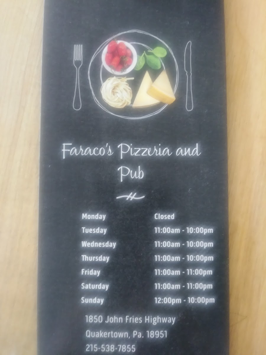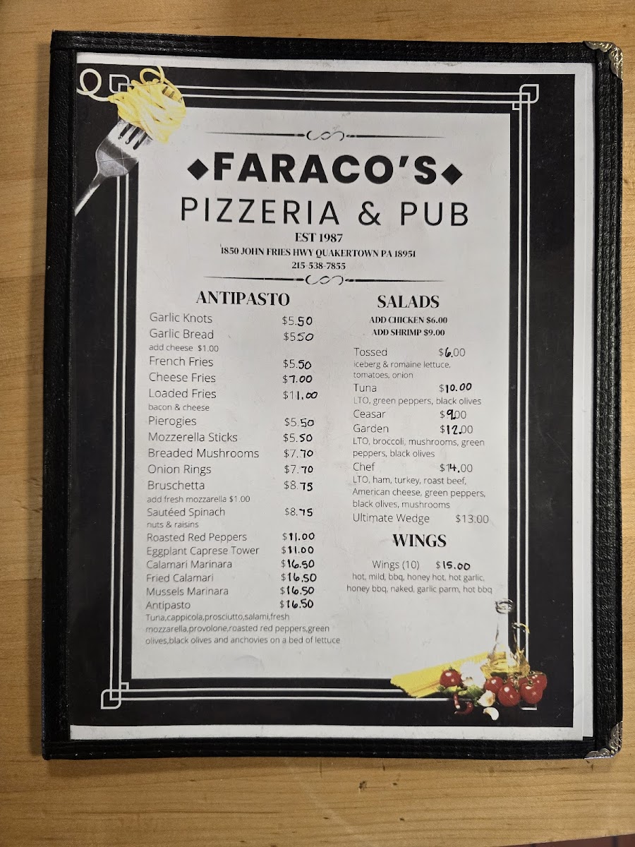 Faraco's Pizzeria & Restaurant, where every dish is a celebration of authentic Italian flavors! Nestled at 1850 John Fries Hwy, Quakertown, PA, our menu is packed with mouthwatering specialties that will leave you craving more. Whether you're in the mood for our iconic Pepperoni Pizza or the fresh, vibrant Margarita Pizza, there's something for everyone. Don't miss out on our savory Bruschetta and the comforting Veal Parmigiana that are sure to steal the spotlight. For a hearty meal, try our Italian Hoagie or the delicious Italian Stromboli! Pair your feast with a refreshing Blue Moon Belgian White or indulge in our loaded fries and garlic knots for the perfect side. From Buffalo Chicken Pizza to Chicken Alfredo, we invite you to explore the flavors at Faraco’s that will keep you coming back for more!